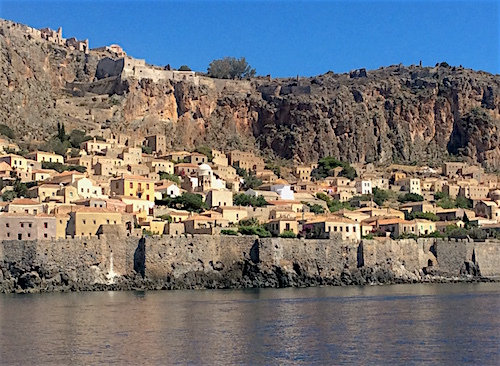 Monemvasia has an ancient walled town high up on a big rock, (enough about rocks), it is very nice to visit, with