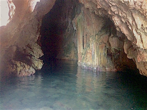 There is a cave in the hillside opposite, you go in with the tender and it opens out into a wonderful setting, the