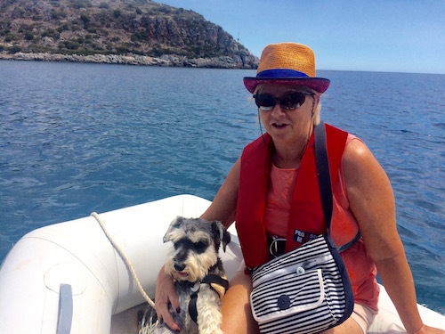 light is reflected from the sandy bottom up through the crystal clear turquoise water, or one could swim into it from the boat and really enjoy a good snorkel, Alfie loves these little adventures, I was thinking when in there wouldn't this be a wonderful attraction on Ireland's Eye. We met our French friends Claude and Anna here, they are years knocking around the Mediterranean, Claude is a good fisherman, he had a gift of some very fine yellow tuna steaks for us from a tuna that he caught on the way in, it was over twenty five kilos in weight, all the boats in port were feeding on tuna for the week, I parted with some of my Teelings Irish Whiskey, fair exchange being no robbery, Claude and Anna like a wee dram before hitting the sack and my whiskey is always a treat for them. Anna speaks no English, she told us a story, through Claude, over dinner one night of her being of polish decent, born in a concentration camp during the WW11, her father survived being what was then an essential worker, but her mother didn't, she was repatriated with her father after the camps were closed down, her father lived to a great age and received a pension by way of compensation from the German government to the day he died. Stories like this makes one feel proud of our grandparents, both my grandfathers and one of Linda's fought in that war so that people like Anna could live to tell their story all those years on.