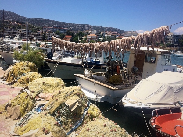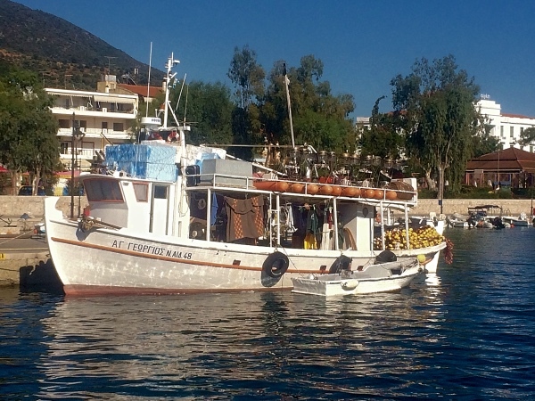 We had a very enjoyable five days here, a typical Greek fishing village were they make the cruiser very welcome, the taverna's appreciate the business and the food is cheap. The fishermen go out in all weather at night, fishing for sardines and other small fish, they land their catch at around five AM, I was usually woken up by the noise of them sorting out the catch and loading it into vans, then they were off to their beds by six, the day's work done.