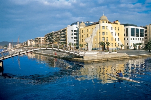 Whilst the shelter is good and the sea remains flat, swell comes into the anchorage, very uncomfortable swell. DeDanann was rolling from side to side constantly, Alfie and I were both seasick and neither of us could face any food, it was just dreadful, as the wind shrieked through the rigging night and day. We put up with this for thirty five hours until the dawn came up the next morning, I got up and decided to up anchor and bull our way against the wind and waves to the port of Lavrion some twelve miles distant. We entered the port, a big commercial port for cargo ships and ferries, the shelter from wind and waves was most welcome as we tied up on the charter quay with the assistance of a young Dutch lassie who worked for a charter company and was up and at it early.