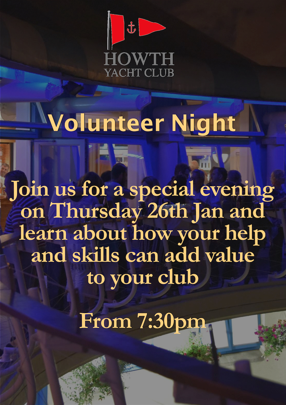 As Howth Yacht Club's plans unfold for 2017 and with an ambitious sailing and social programme ahead, the club is looking for a wide range of tasks and skills from members and your committees have arranged a special evening to present and explain the various volunteer roles that will be required this year. This evening will be hosted by the club's sub-committees on Thursday 26th January, offering members the opportunity to meet with them and to hear about and discuss the many roles that they are seeking to fill.