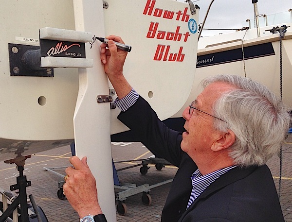 Not something to be encouraged in most circumstances, but this photo is of Bob Johnstone 'autographing' the J24 'Jebus' on the forecourt of the club. Bob with brother Rod founded the famous J-Boat Company in Connecticut in 1975.