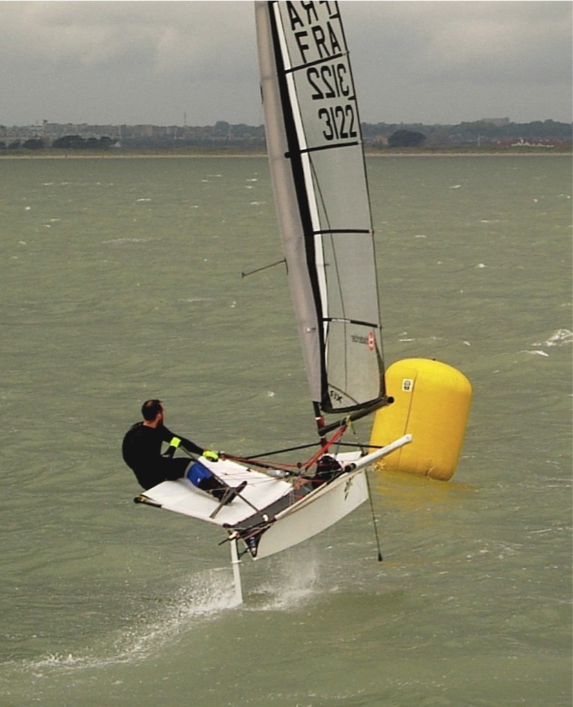 sailors whose craft prefer flat or short choppy seas. Alistair Kissane took the ‘spill of the day’ award, by clipping his trampoline against the finish mark and ended up in a spin to the drink. ‘Top Gun’ was Rory Fitzpatrick again, with John Chambers on his tail. Scorching around the course, keeping out of the dogfights, was Ronan Wallace, all the way from Wexford.