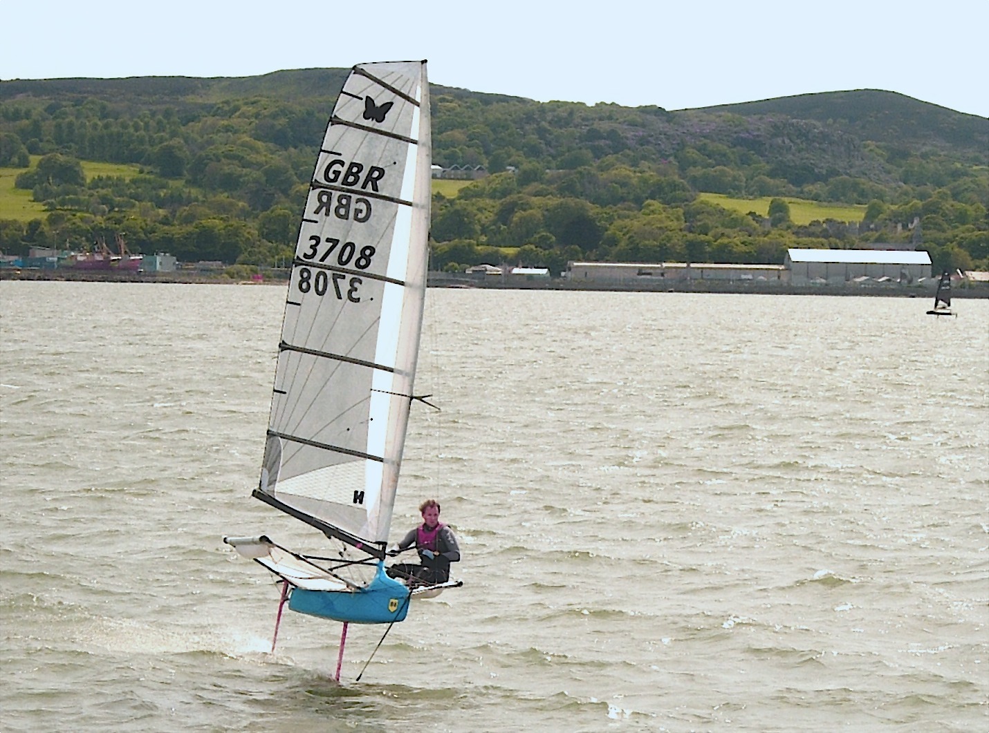 Sunday's breeze was a 20kt Southerly, underpinned by a flood tide. Reasonably flat but with some cross swell. This was always going to be at the edge of the comfort level for the Moth