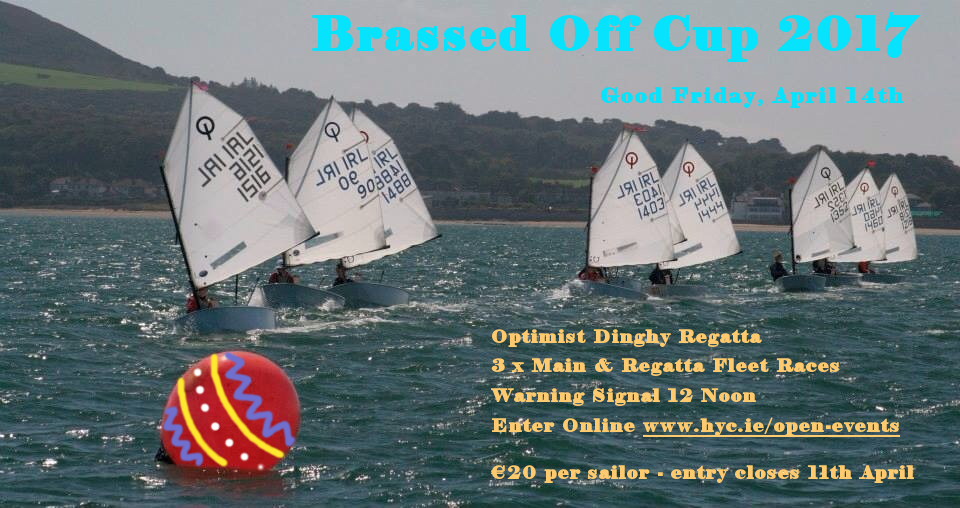 Howth Yacht Club's annual Brassed Off Cup is once again being held on the traditional day of Good Friday, 14th April. This fun Optimist dinghy event is a great opportunity for junior racers to dust off their gear and get out to enjoy sailing in Spring weather on the safe waters just north of the harbour.