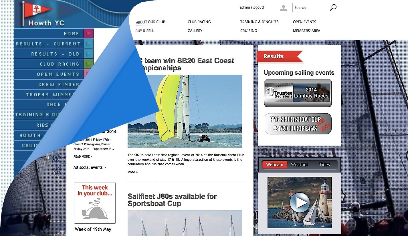 Howth Yacht Club is delighted to announce the arrival of our long-awaited new club website. The layout and content is aimed to be clear, easy to navigate and also easy to manage. The previous multiple navigation tabs on the home page have been replaced by just 8 major titles, each designed to contain associated sub-sections and pages.