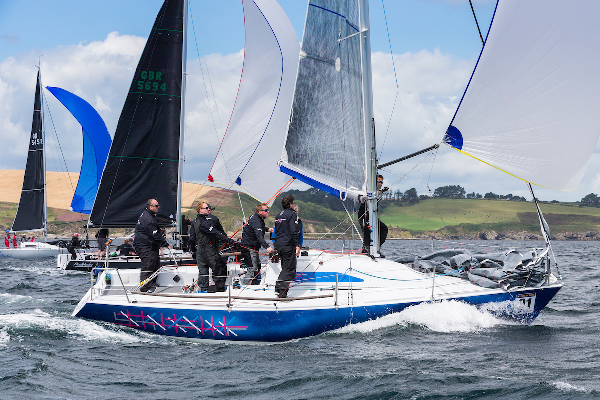 Day Four (Thursday) the race office hosted two more windward leeward races and a short coastal race in increased wind from the south west up to 25 knots. Race one was was won again Swuzzlebubble, race two and the coastal race were both won by Checkmate XV – D Cullen HYC.