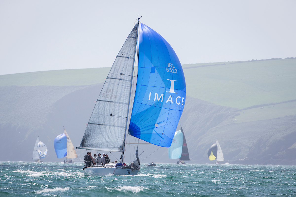 The event started on Sunday 13th August with 3 practice starts followed by a practice race run by race office Anthony O’Leary on his committee boat Irish Mist. Racing started on Monday with 3 windward leeward races, the first two races were won by Swuzzlebubble (UK), the previous two-time winner largest yacht in the fleet and race three was won by the Big Picture (Michael and Richard Evans HYC) under the guidance of tactician Mark Mansfield. (Top photo)