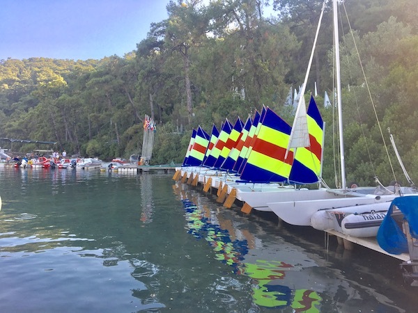 This was all started many years ago by a local man called Sadun Boro, he was the first recorded Turk to circumnavigate the world in his 34 foot ketch, Kemal, having set out from Istanbul in 1965 and come home in 1968, he then did many long ocean voyages with his young family before setting up this fine academy of sailing were he lived on his boat to the day he died in 2015. His dying wish was to be buried under the pine tree that his boat is moored to, this request is presently being debated in the Turkish parliament, in the mean time he lies in the Cemetary in Marmaris. His love of nature and the sea is very evident in the way this academy is run, it truly is a wonderful asset to those who have the good fortune to come here. Sadun wrote several books about his adventures, sadly, only in Turkish, he wrote a pilot book on Turkish waters, I had a loan of it and have to say it is the finest pilot book that ever I set eyes on, the quality of the photography, the mapping and charting is something you won't find too often, as I don't speak any Turkish, God Heikells book will have to suffice.