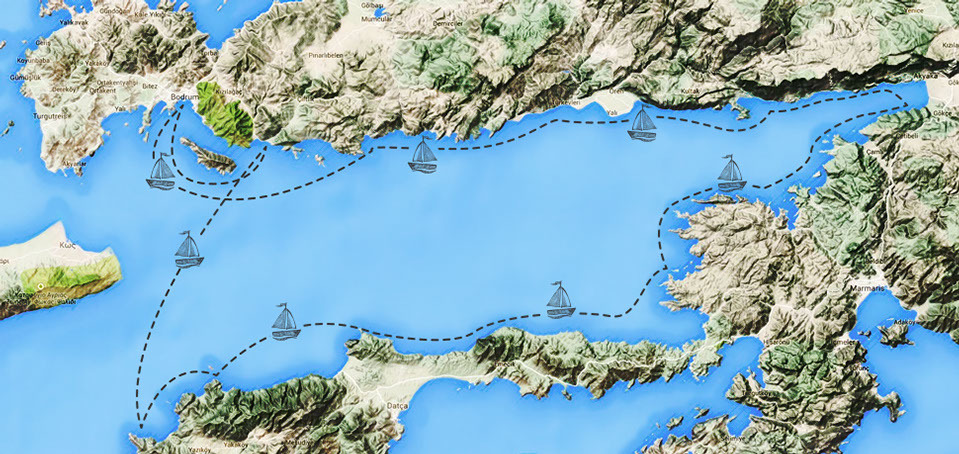 We set off on an easterly course through the Gulf of Gekova, (Yakova) the prevailing wind here is from west north west, it blows most days at 15 to 20 knots, increasing to 25/30 in the late afternoons for an hour or two before settling down to 5 or 6 knots by sunset, the sea is well sheltered on the north coast of the Gulf and we got some cracking good sailing almost every day we were on the move.