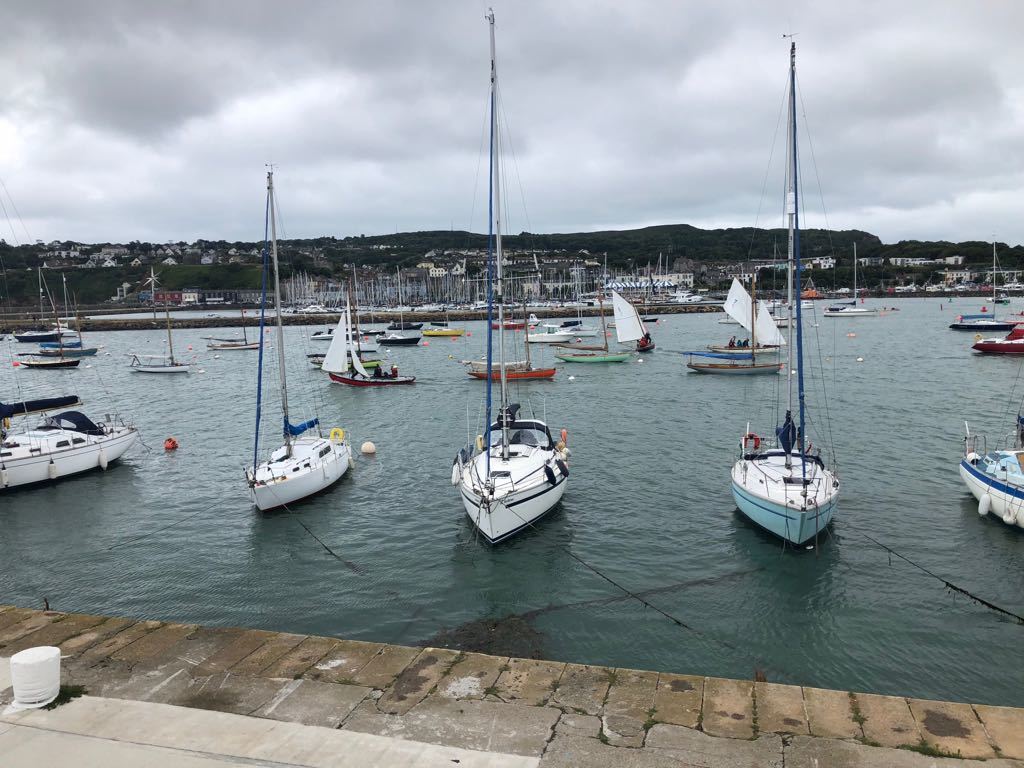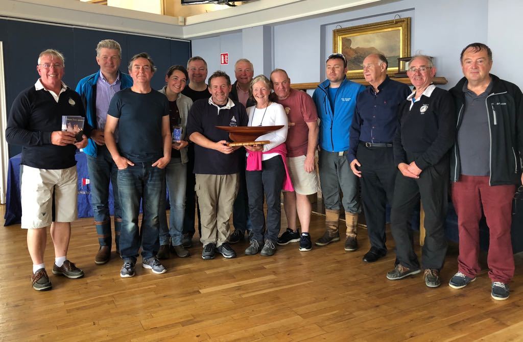 The changed weather did not dampen the spirits as racing had to be cancelled on the Saturday and crews eithervisited the sights of Dublin or ,more locally, one of Shane’s Hikes tour of Howth . The crew’s got on the water on Sunday morning with a fleet race of none boats, 6 scratch boats allocated to the visitors and 3 handicap boats to the Howth 17 team. The conditions were challenging with a ‘bit of sea’ and about 15knots but all had an exhilarating sail. Gareloch Charles Darley finished 1st in Deilginis but the team prize went to the home fleet: