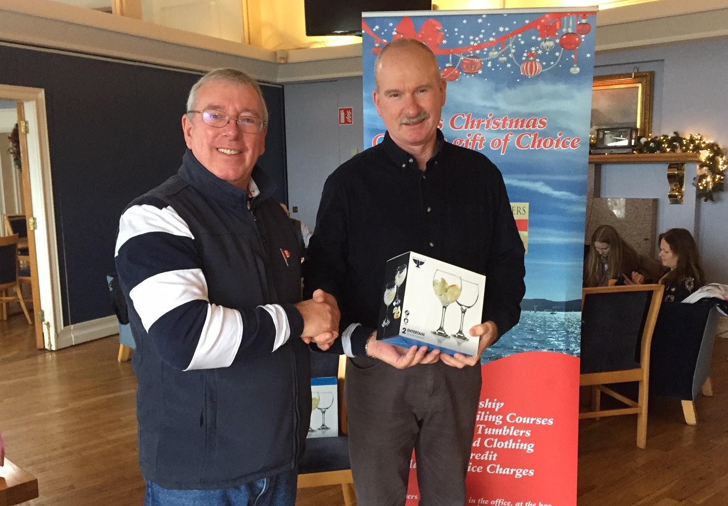 (Top photo: Stepen Mullaney collects his prize from Commodore Ian Byrne, below the handicap prize went to 'Shenanigans')