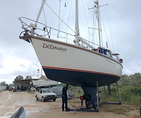 We were late getting back to DeDanann this year, three funerals of family and friends in the month of May kept us at home for much longer than normal. The journey down to Preveza is a long one, we fly to Athens with Aegean as they take Alfie in the hold then it’s a six hour road trip to Preveza, it was a long day as our flight took off from Dublin at midnight arriving 06.30 Athens time, then pick up a hire car for a one way trip to Preveza which is expensive because they charge €200 to return the car to Athens, there was not much point in taking a hotel at 06.30 and trying to sleep in the daytime.