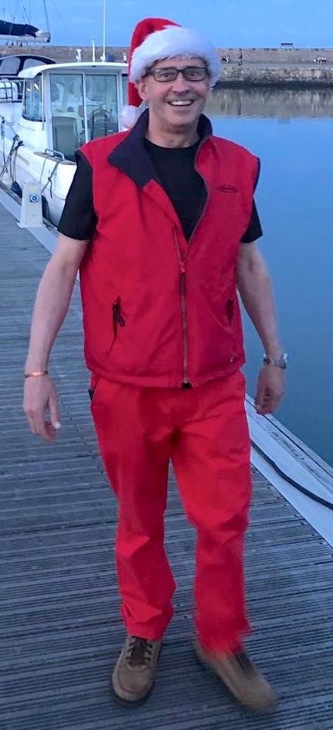 occasion, not least the team on Vince Gaffney’s ‘Alliance II’, no doubt finding their Santa costumes when the Christmas lights were dusted down for good excuse and to add atmosphere to the night. But it was Gerry Sargent’s Vitesse 33 ‘Pip’ that found pole position on the marina pontoon and with help from nephew Gary and crew, Gerry set out his ambition and in a veritable fountain of light, sound and pyrotechnics, succeeded in winning the prize for best dressed boat. ‘Pip’s crew of Mermaids and their Mermaid Security added great colour to an already colourful night.