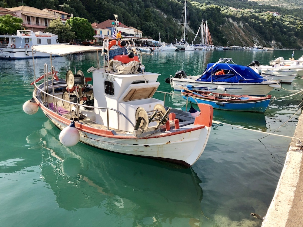 Our time in the old fishing port of Paleiros was up and we set off in flat calm late in the morning hoping to catch the afternoon breeze that generally blows from the North West down here in the Ionian to our next port of call Kalamos. We arrived after a slow sail under cruising shute with both my fishing rods run out and not a bite to