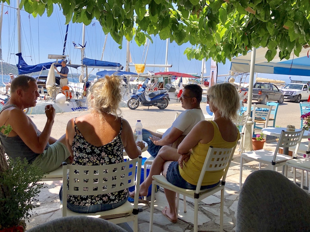 The following morning we moved into the port and tied up beside another large motor boat, well” they say, beggars can’t be choosers. We became friendly with the skipper, a recently retired Hellenic Navy Captain, he was waiting for the arrival of the owner and his family in a few days time. Over dinner on board DeDanann one night, he told us of his time rescuing migrants off the Turkish coast during the migrant crises a couple of years ago, for over two years there was seldom a time when he would come back to port to provision and refuel when the deck would not be littered with the dead body’s of migrants who had drowned, whole families lost to the sea. He was also very mindful of the amount of young men who were the most likely to survive, they had a policy of cable tying and searching them once they came on board, often finding they were carrying large sums of money (€15/20,000) and the best of iPhones in water proof covers, they would nearly all lie about their age claiming to be juveniles and no documents or passports. He would argue that young people that age would not have that kind of dough in normal circumstances, and why would they just leave their family’s and siblings behind? He would argue that at least the young Greeks could not muster up that kind of dough or be inclined to leave family behind were their roles reversed.