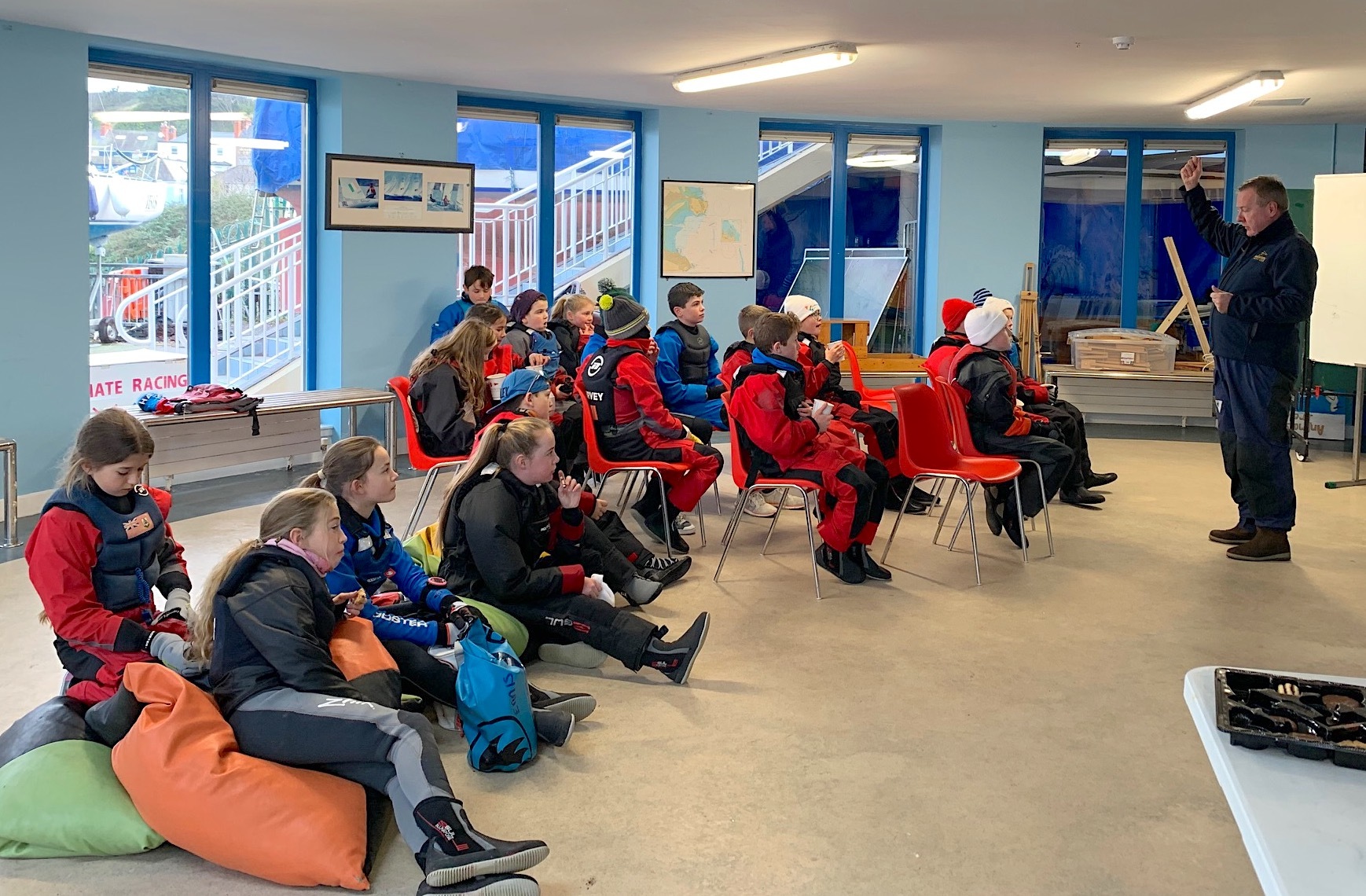 The twenty sailors had the benefit of an excellent briefing from OOD Niall Gallagher, with hot chocolate to warm them up before they launched (thank you to our friendly chef for his help!)