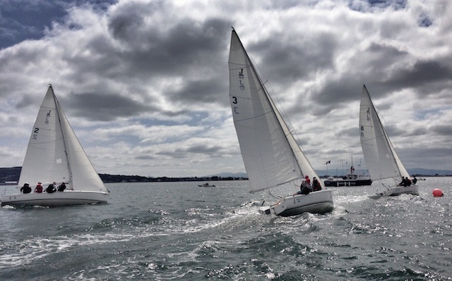 The championships was run in the ISA Sailfleet J80s and the above picture shows Simon Rattigan (in boat 8) crossing the line in first place while Ronan Cull (number 3) bears down on Peter Courtney (2) which allowed Dermot Skehan (out of picture) shoot the line and finish ahead of Peter and gave Ronan's team championship victory by one point.