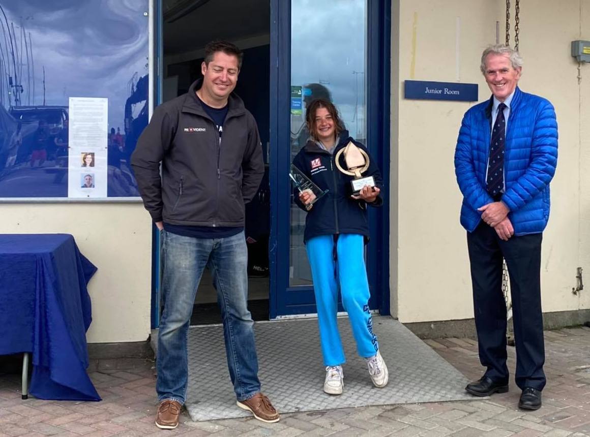 Caoilinn Geraghty McDonnell (RStGYC) with Gary Cullen (Provident CRM) and Neil Murphy (Vice Commodore Howth Yacht Club).