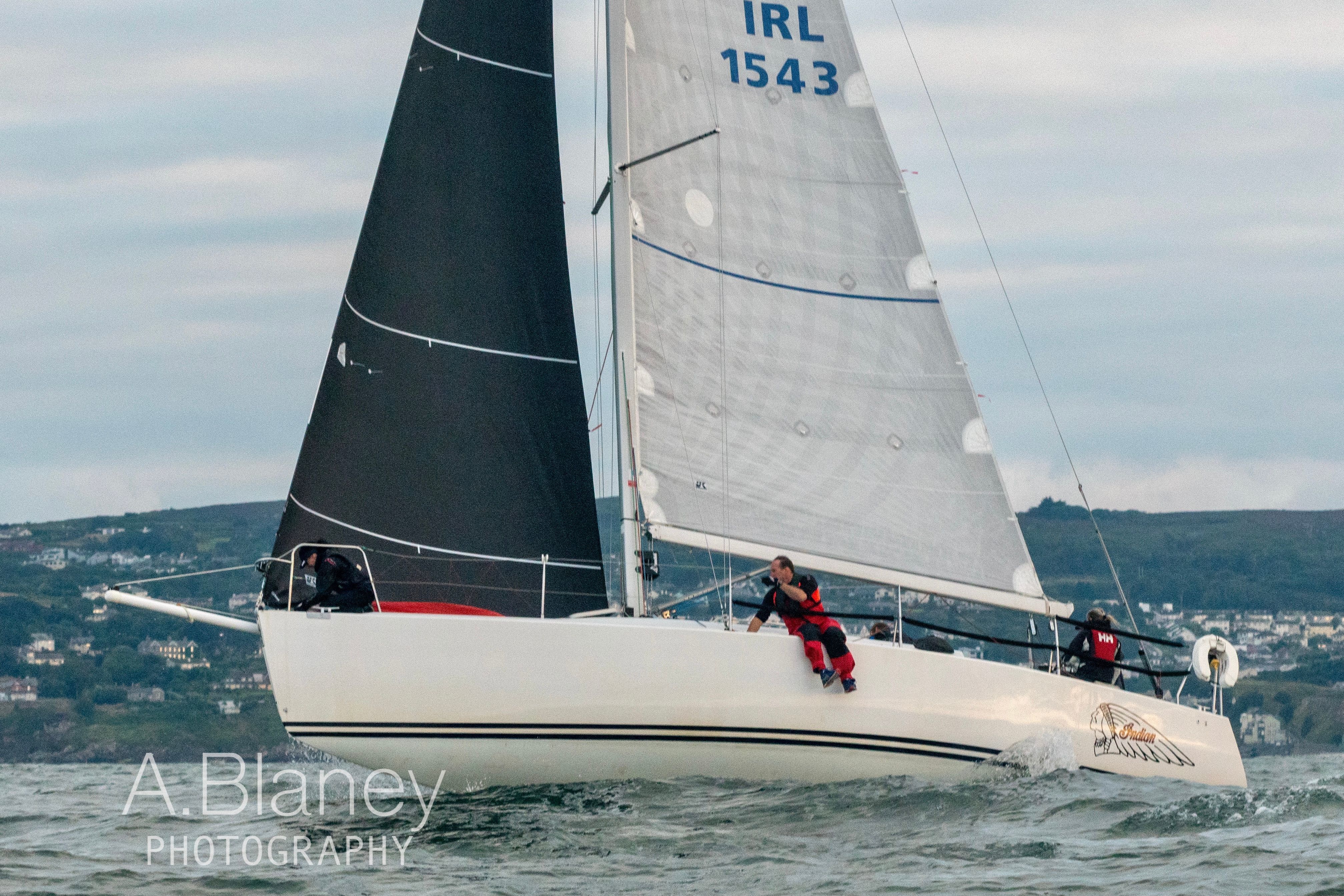 With many of the boats using the race as their last tune-up for the ICRA Championships, there was plenty of competition to bag the favoured Island end of the start line. The season’s practice and good judgement paid off for most and, over the four starts on the evening, only one boat found itself recorded as OCS. After 63 minutes of close racing on a course that brought the fleets north along the coast of Ireland’s Eye and around the Club marks off Portmarnock beach Indian, Simon Knowles’ J109, lead the boats back south to take line honours for the evening.