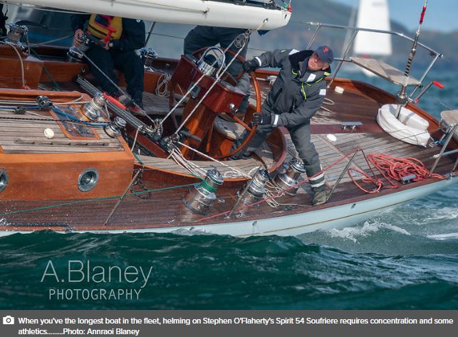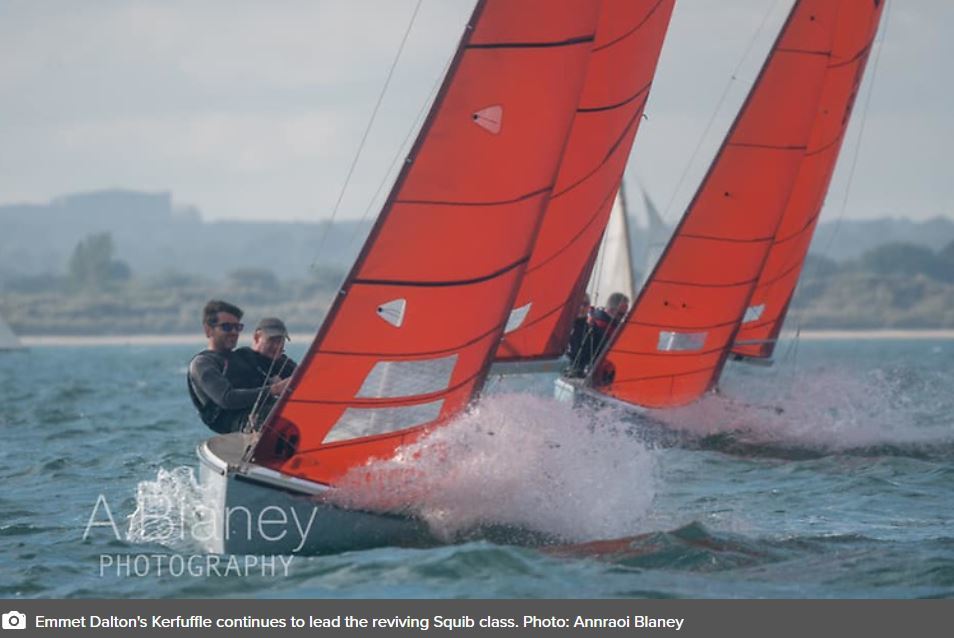 By contrast the venerable Howth 17s – now racing fourteen boats every Saturday – have Oona (Peter Courtney), Deilginis (Massey/Toomey/Kenny) and Isobel (Brian & Conor Turvey) tied overall for first on 9 points with the discard made, with Saturday's winner Oona - after some great racing for the class-leading on the tie break. Those three are now in something of a world of their own, as next in line – Ian Malcolm's Aura - is back on 17 pts.
