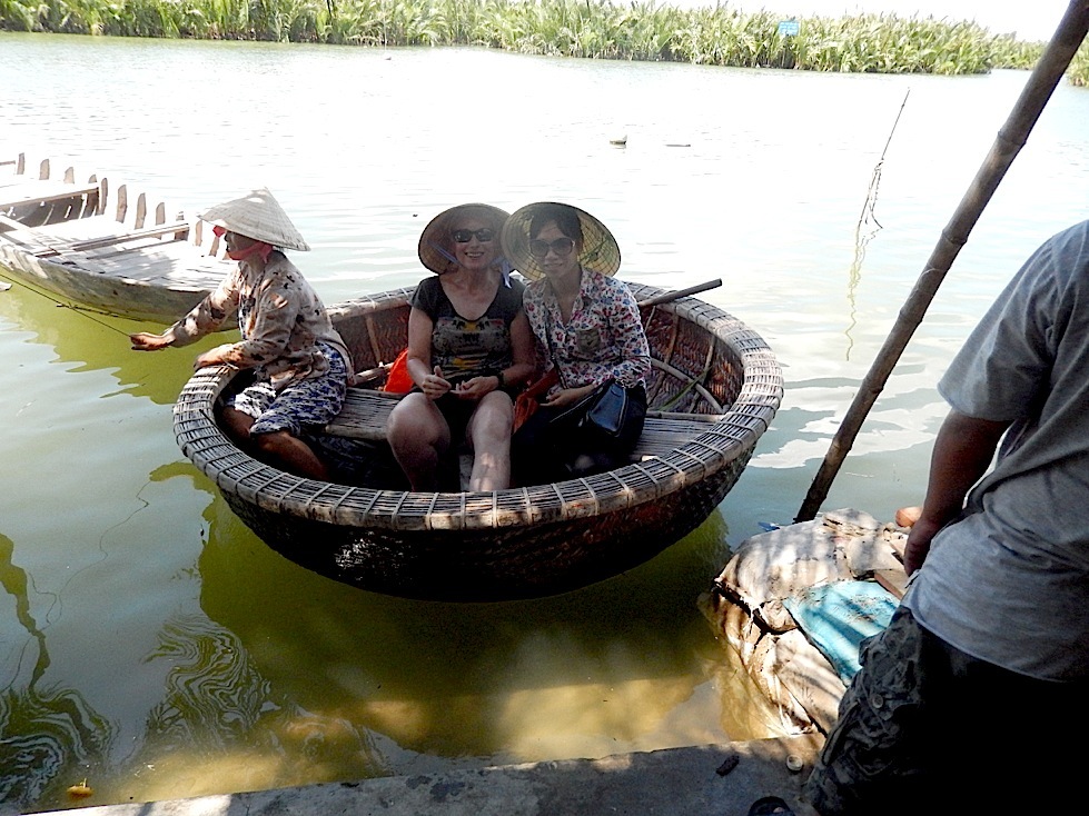 Re-examining the basket as a boat I was immediately reminded of Edward Lear's poem, "The Jumblies" who went to sea in a sieve. This boat was a circular basket made of bamboo with one seat across the middle. Of course here might be an opportunity to get out on the water - and experience this bizarre craft for myself. If anything goes wrong I can swim! Than negotiated a price with the owner and off we went into the wild blue yonder. Thankfully the owner, a women in her fifties came as skipper.