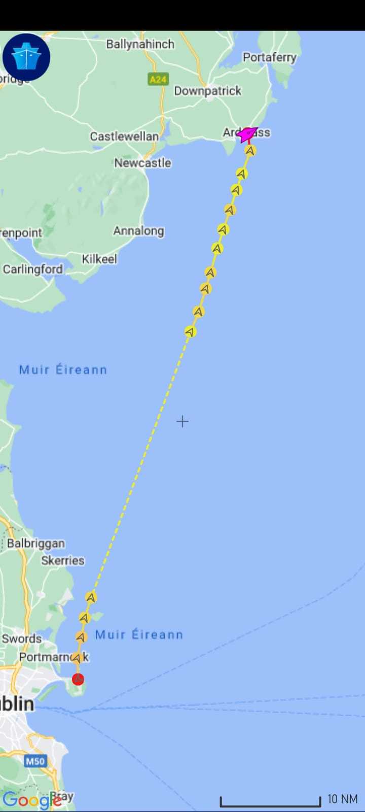 Up past Lambay, Rockabill, nice views of the Mourne mountains….and the wind got up so there was some surfing and (later) claims of speeds of 11.6 knots achieved.