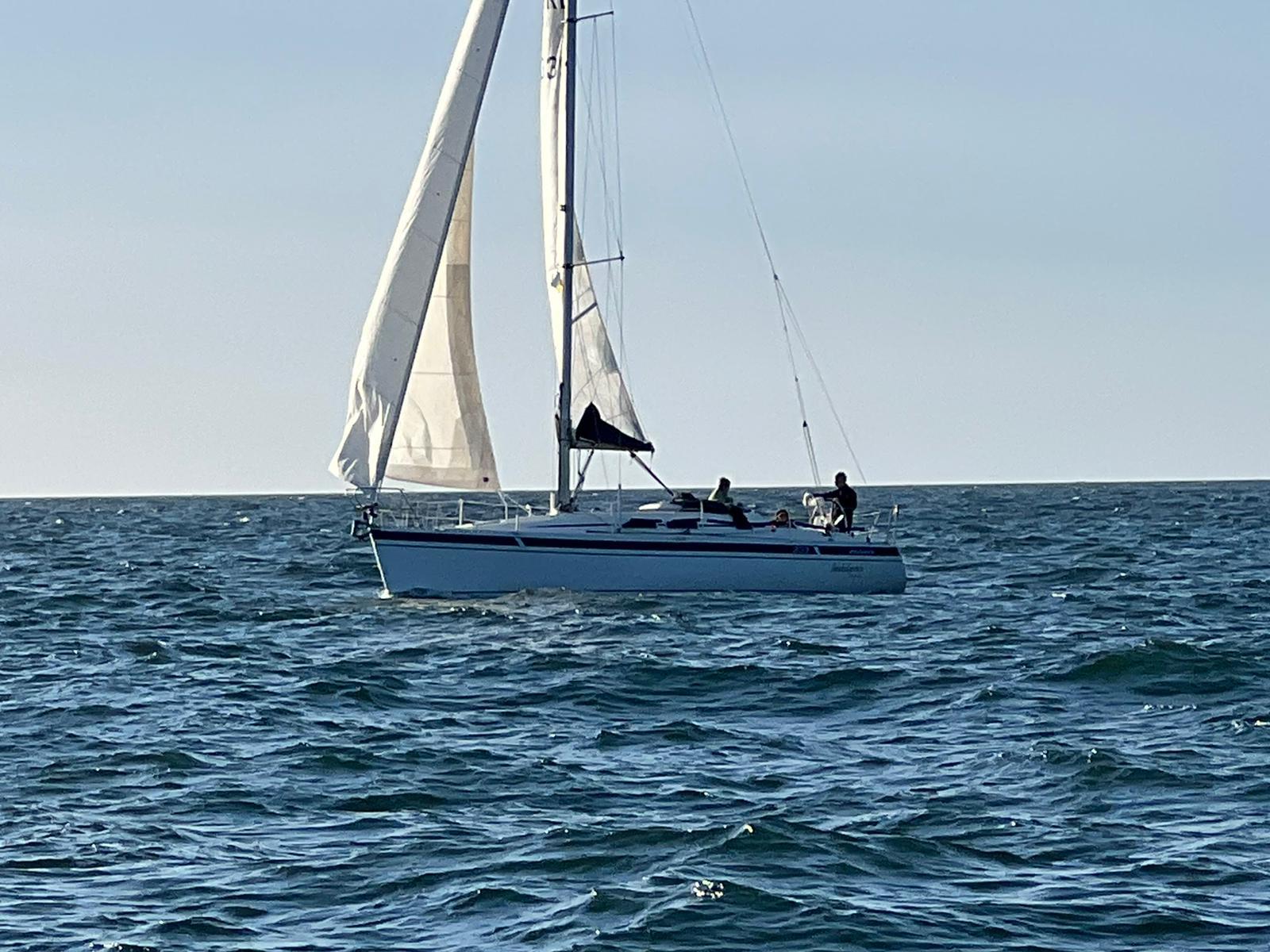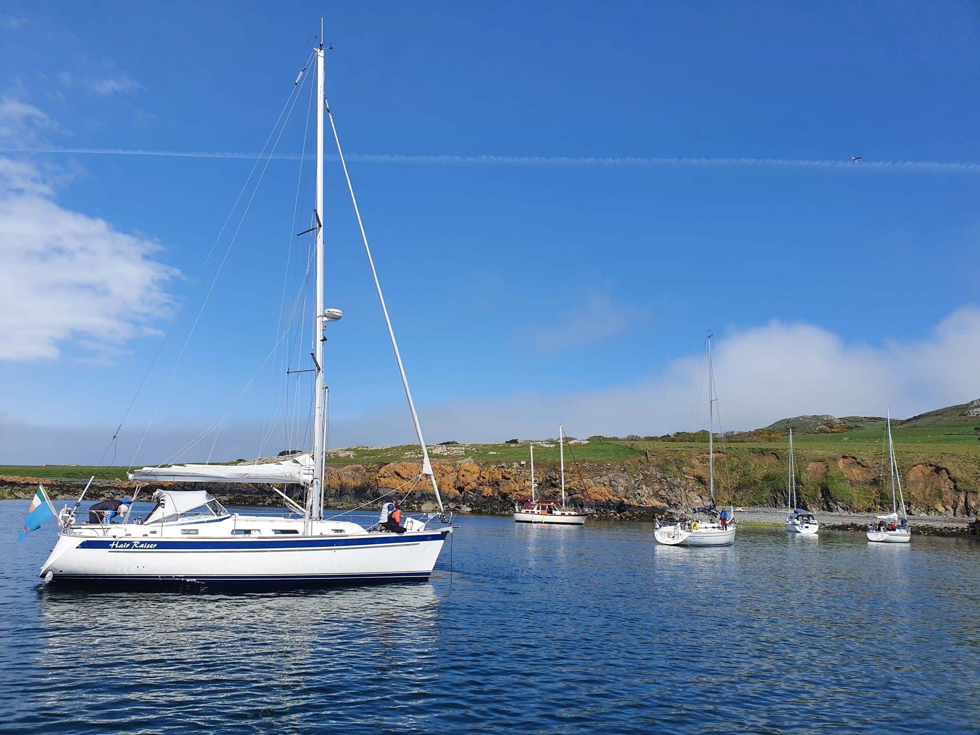Nine yachts set off early on Thursday morning, bound for Ardglass. Blue sky, sunshine, a following wind – what a lovely start to our first post-Covid cruise!
