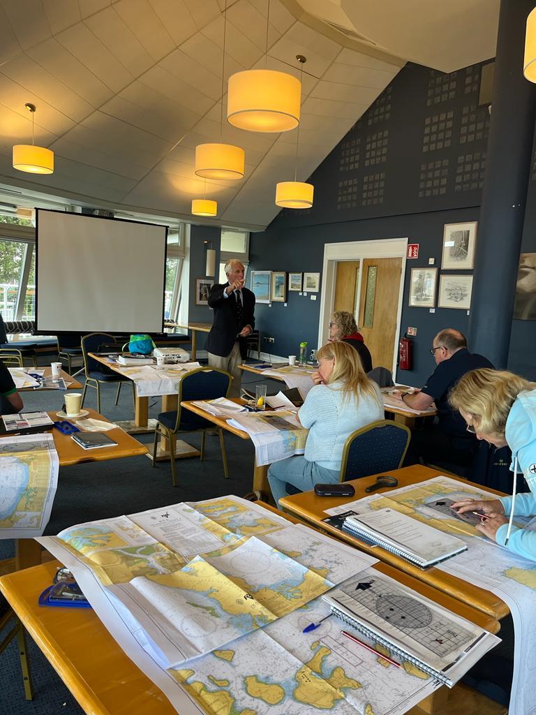The Cruising Group recently organised an RYA Essential Navigation and Seamanship course for 11 members.. The 2 day course was given by David Jerrard of Seacraft and was deemed a great success by all. Chartwork and plotting, tides, safety, and much more were covered, giving the participants a useful grounding or refresher in some essential topics.